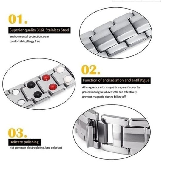 Men's Sports Energy Magnetic Bracelet 316L Stainless Steel Health Care Magnetic Therapy Anti-radiation Watchband Buckle Bracelet Men's Fashion Accessories + Adjustable Disassembly Tools