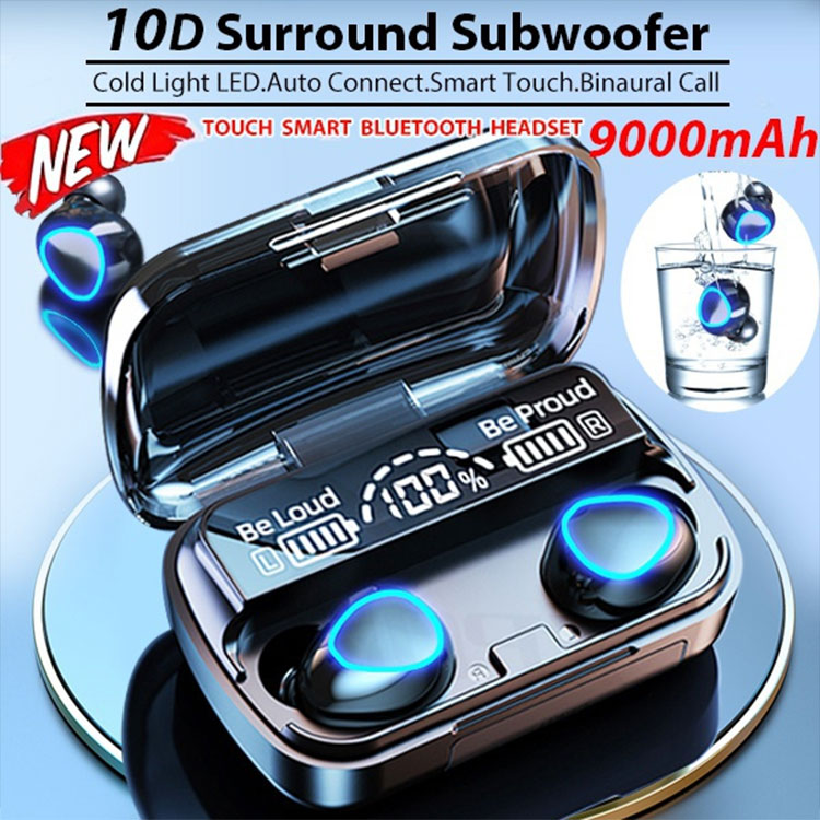 2022 New 9000mAh 9D HiFi Bluetooth 5.0 CVC8.0 Noise Reduction Stereo Wireless TWS Bluetooth Headset LED Display Headset Waterproof Dual Headphones with Power Bank Chagring case