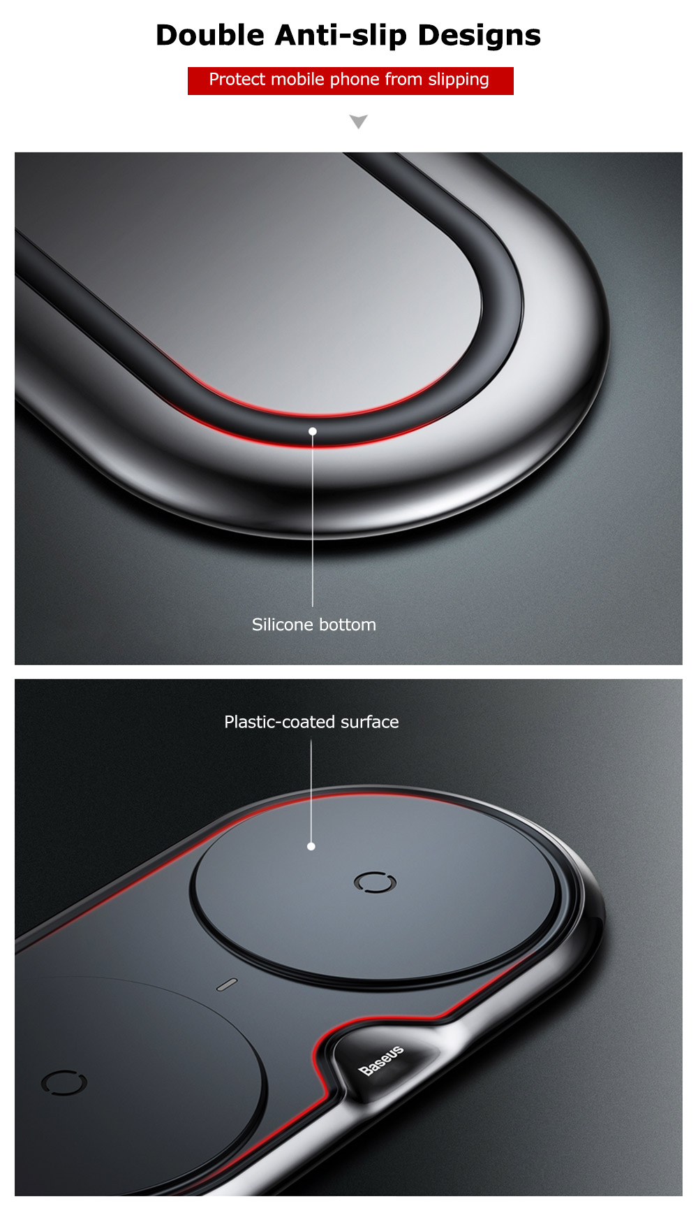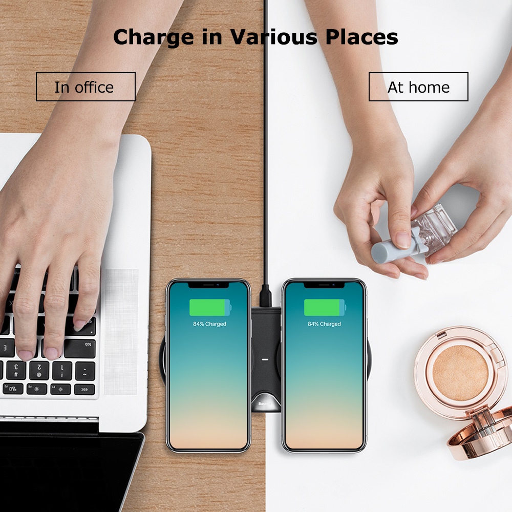 Compatible With Compatible With Baseus Wireless Charger Dual Pad Silicone Fast Charging peed CN Plug For Phone Chargers