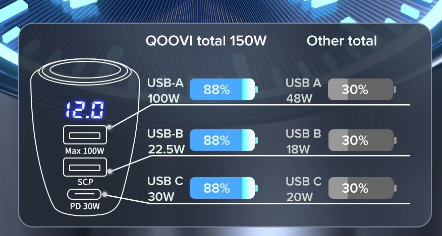 QOOVI 150W Car Charger Usb Type C Super Fast Charging PD 4.0 Quick Charge 3.0 Cigarette Lighter Socket For iPhone Xiaomi Samsung